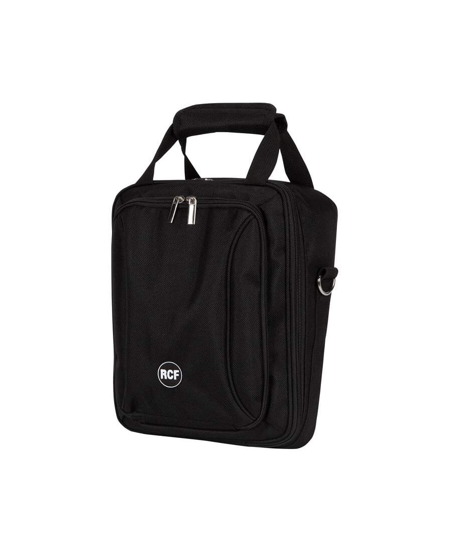 RCF BG F 6X. Bolsa de lona acolchada para mezcladora RCF F 6X con asa y bandolera. Ámplio bolsillo frontal con compartimento separado para tabletas u otros accesorios.