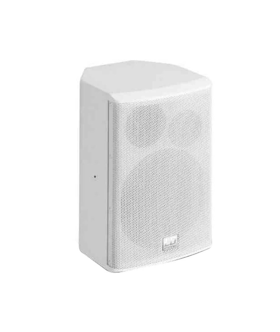 La carcasa es de madera DM de 12 mm de espesor, tiene un lacado de alta durabilidad con un acabado en negro o en blanco. El soporte de montaje incluido y los puntos de volado M6 ofrecen varias posibilidades de montaje. Como accesorio, se ofrece un soporte articulado universal. La conexión de altavoz se realiza mediante terminales de presión.