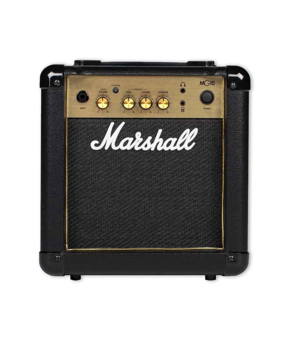 MARSHALL MG-10 GOLD. Con todo lo necesario para conseguir el timbre perfecto, este pequeño amplificador combo de 10W dispone de dos canales Clean & Overdrive con un control Contour en este último para conseguir darle tu toque personal. Con un altavoz de 6.5”, el MG10C dispone de entrada de MP3/line y salida de auriculares con emulador de altavoces para que puedas practicar en silencio.