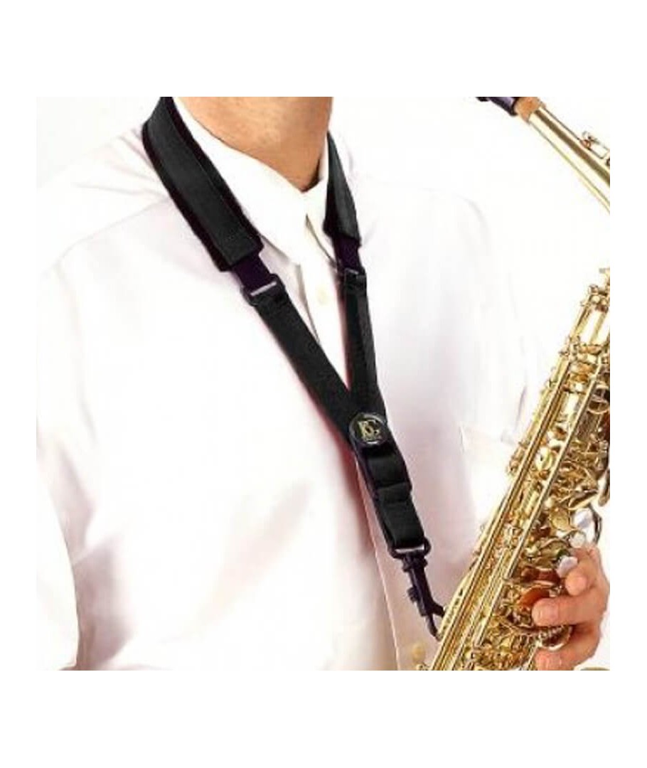 CORDÓN SAXO ELÁSTICO ALTO Y TENOR BG S10ESH. Almohadillado en el cuello. Elástico. Para saxofón alto o tenor. Gancho de mosquetón en plástico.