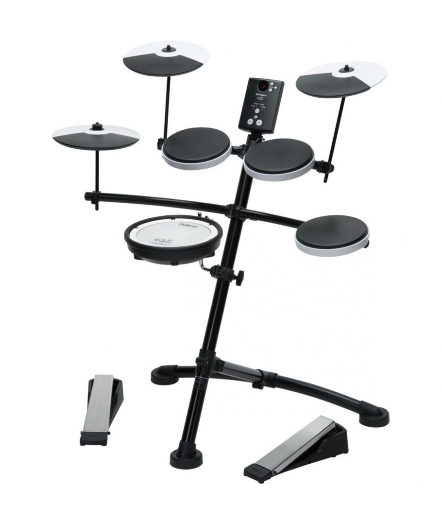 Roland TD-1KV. Las Roland V-drums son las baterías electrónicas más populares por una razón: Porque son las mejores. Son una mezcla de sonido superior, auténtico y durabilidad, cada kit de la gama de V-drums funciona al máximo nivel, un testimonio de más de tres décadas de desarrollo de baterías electrónicas. La compacta TD-1KV no es la excepción, ofrece una respetada calidad V-Drums en un kit que ocupa poco espacio y que evoluciona al mismo ritmo que evoluciona tu nivel.