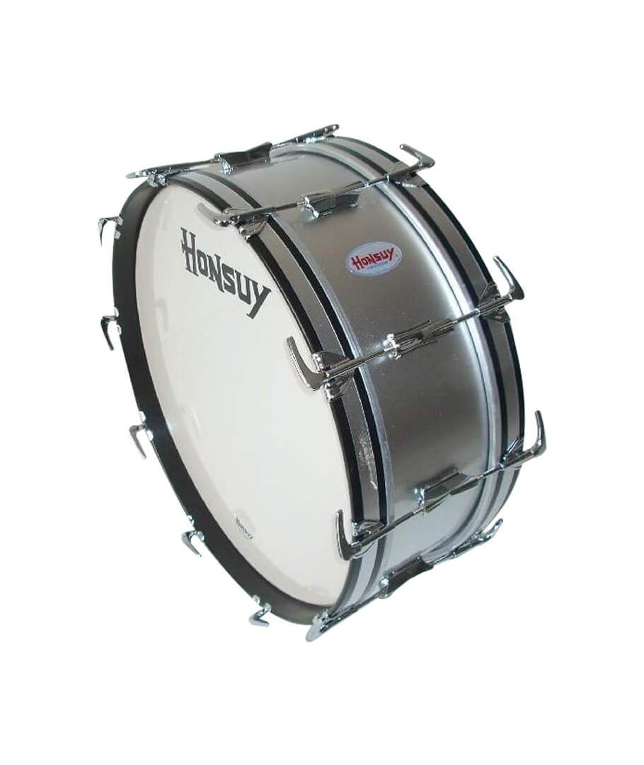 BOMBO HONSUY 20300. Bombo para banda fabricado en madera y forrado de celuloide. Este instrumento es muy recomendado para formaciones musicales, en pasacalles, etc. Posee bellota central para tensiones independiente en afinacion de cada parche.