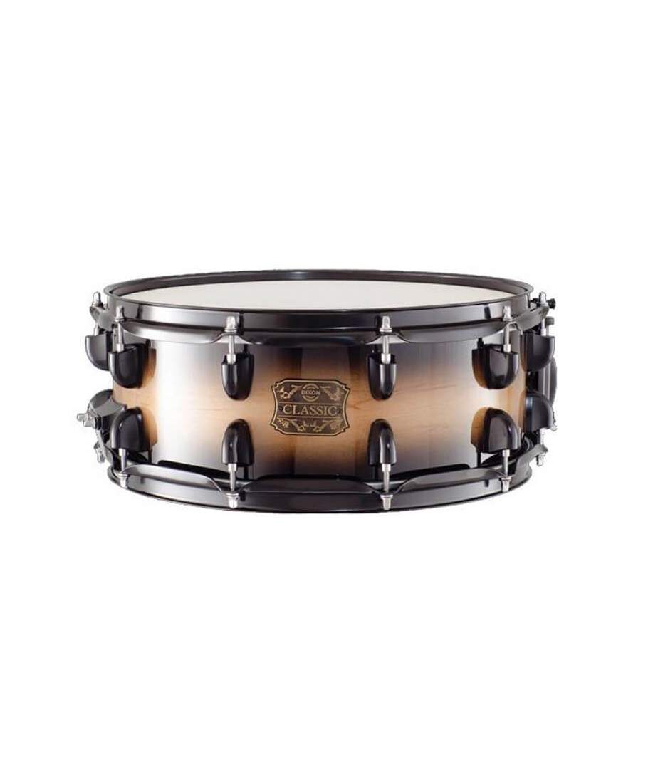 Caja Madera 14" Dixon CS554BB-BK Classic Wood. Caja de la prestigiosa marca de baterías Dixon, una caja construida con cascos de arce, formado por 6 capas de arce, bellotas dobles, aros triple Flanged 2,3mm y equipada con parches premium coated clear. Obtendrás un sonido cálido y definido con un calidad musical que te sorprenderá, es una caja que está a la altura de cajas de gama alta. Medida 14" x 5,5" y con un acabado BlackBurst.