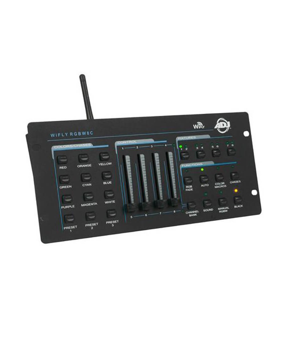 El WiFLYRGB8C es uno de los controladores DMX de American Dj más sencillos y versátiles disponibles en la actualidad. Es ideal para DJs, night-clubs, salones, bares y para cualquiera que desee un control sencillo de Reflectores LED, Barras, Focos o paneles.