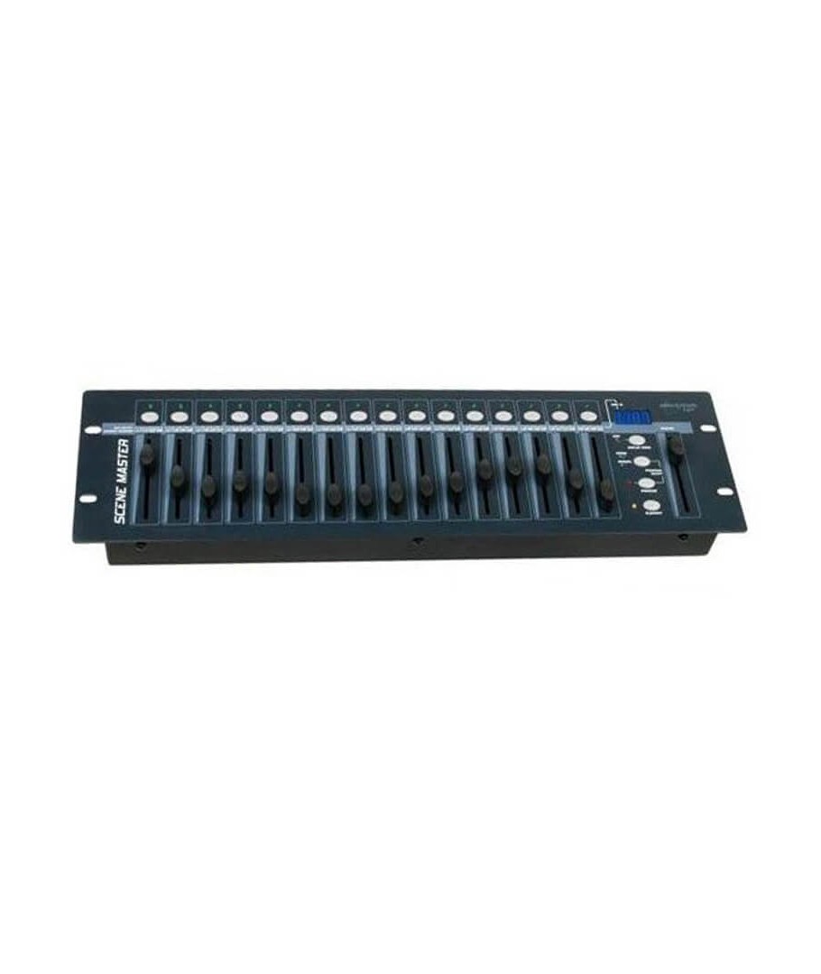 JBSYSTEMS SCENEMASTER SCM1. Controlador DMX de 16 canales extremadamente fácil de usar en todo tipo de aplicaciones: escenarios, DJ, iluminación arquitectónica, etc.