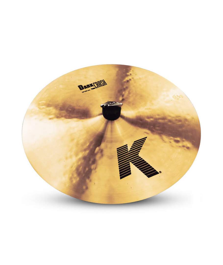 Plato Crash 16'' Zildjian Crash 16 K Dark Thin. Una legendaria serie de Zildjian con tonos secos, oscuros y complejos de colores brillantes. Asociados a los bateristas mas innovadores y a los músicos de jazz. Pueden ser muy dulces o extremadamente intensos dependiendo de cómo sean tocados. Estos platos como toda la serie Cast de Zildjian, están fabricados uno a uno, lo que hace únicos a cada uno de estos platos.