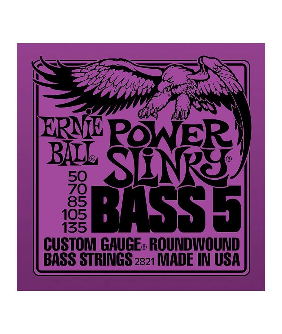 Juego Cuerdas Bajo 5 Cuerdas Ernie Ball 2821 Power Slinky. Las cuerdas de bajo Ernie Ball de la serie Slinky presentan un entorchado de níquel y están fabricadas bajo los más estrictos controles para garantizar la máxima consistencia y una mayor duración. El entorchado de níquel sobre hilo con núcleo hexagonal les confiere un tono preciso y balanceado, con excelente brillo y gran duración. En concreto este juego es una combinación híbrida de las Super Slinky y las Regular Slinky de bajo, convirtiéndose en una de las preferidas por los usuarios a lo largo de todo el planeta.