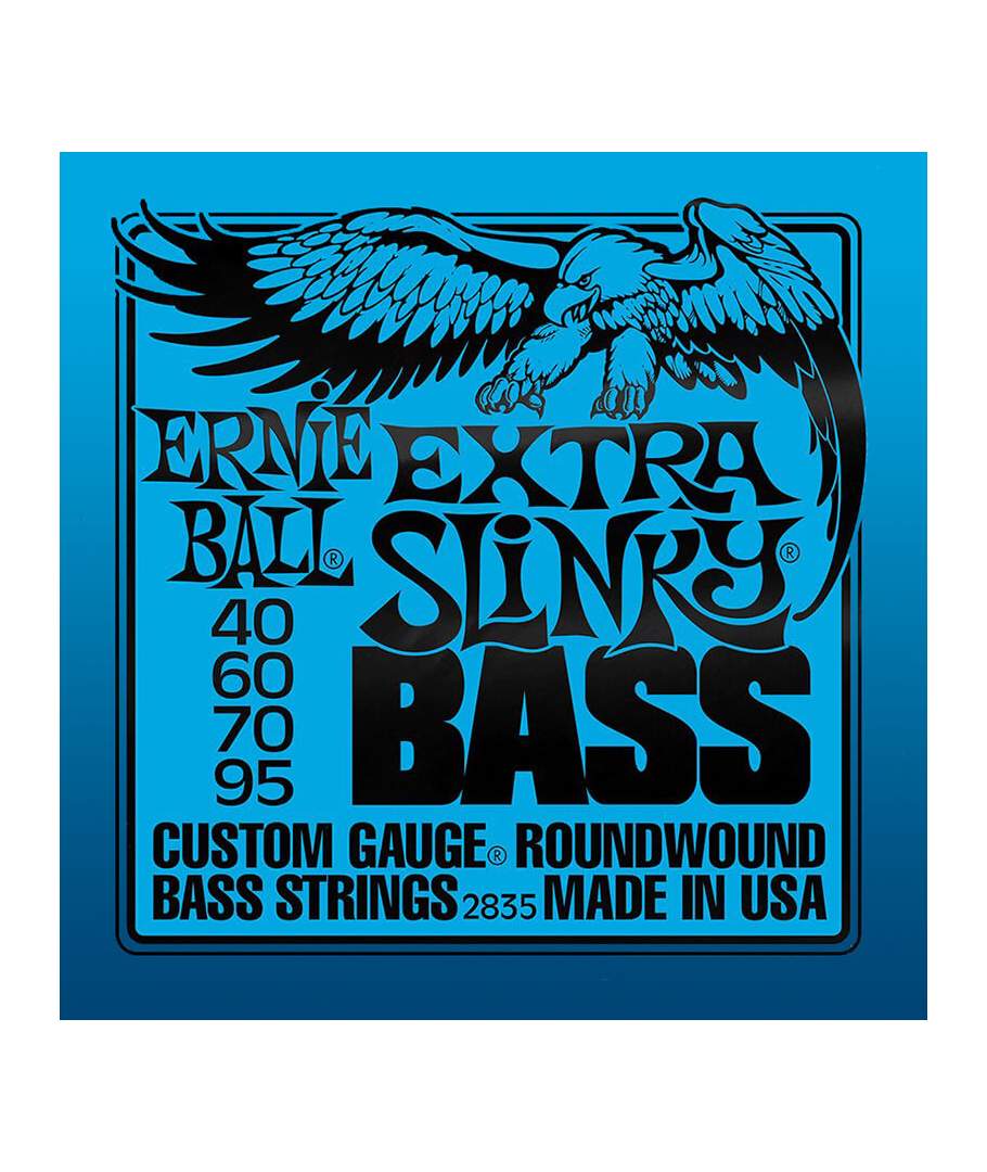 Juego Cuerdas Bajo Ernie Ball 2835 Extra Slinky. Las cuerdas de bajo Ernie Ball de la serie Slinky presentan un entorchado de níquel y están fabricadas bajo los más estrictos controles para garantizar la máxima consistencia y una mayor duración. El entorchado de níquel sobre hilo con núcleo hexagonal les confiere un tono preciso y balanceado, con excelente brillo y gran duración. En concreto este juego es una combinación híbrida de las Super Slinky y las Regular Slinky de bajo, convirtiéndose en una de las preferidas por los usuarios a lo largo de todo el planeta.