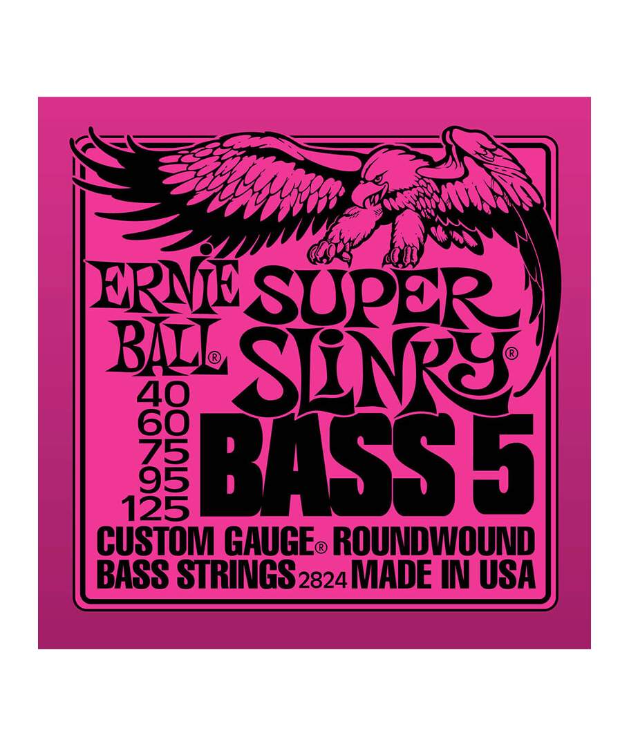 Juego Cuerdas Bajo 5 Cuerdas Ernie Ball 2824 Super Slinky. Las cuerdas de bajo Ernie Ball de la serie Slinky presentan un entorchado de níquel y están fabricadas bajo los más estrictos controles para garantizar la máxima consistencia y una mayor duración. El entorchado de níquel sobre hilo con núcleo hexagonal les confiere un tono preciso y balanceado, con excelente brillo y gran duración. En concreto este juego es una combinación híbrida de las Super Slinky y las Regular Slinky de bajo, convirtiéndose en una de las preferidas por los usuarios a lo largo de todo el planeta.