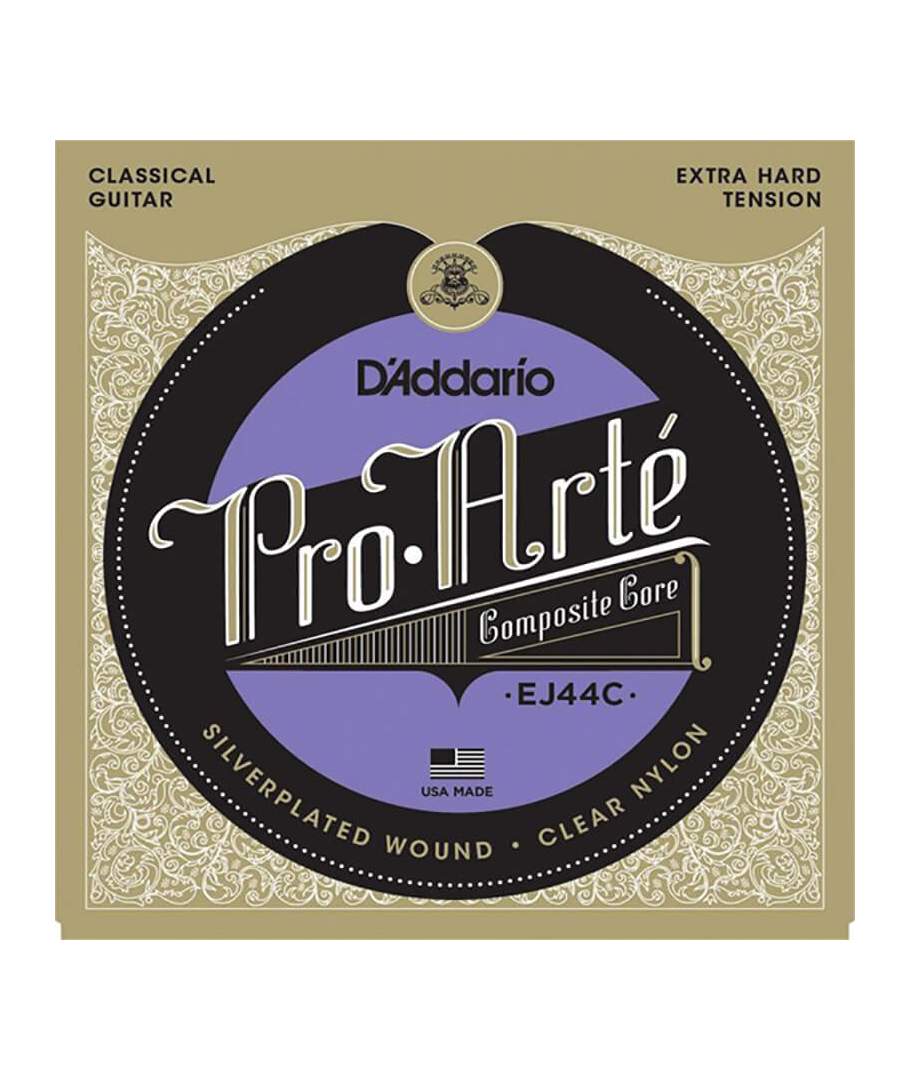 Juego Cuerdas Guitarra Clásica D'addario EJ44C Tension Extra Fuerte. Las cuerdas Pro-Arte Composite se construyen con un multi-filamento exclusivo en el núcleo lo que mejora la vida y consistencia de las cuerdas. Como todas las cuerdas Pro-Arte, los juegos son clasificados por una máquina láser muy sofisticada controlada por ordenador que realiza medidas de diámetro/tensión y control de calidad para asegurar la entonación perfecta. Los juegos Composite desarrollan una proyección adicional. La tercera cuerda proporciona más flexibilidad tonal y una transición de volumen equilibrada entre graves y agudos. Las cuerdas, ligeramente pulidas, reducen el ruido de dedo notablemente, haciéndolas ideales para grabación.