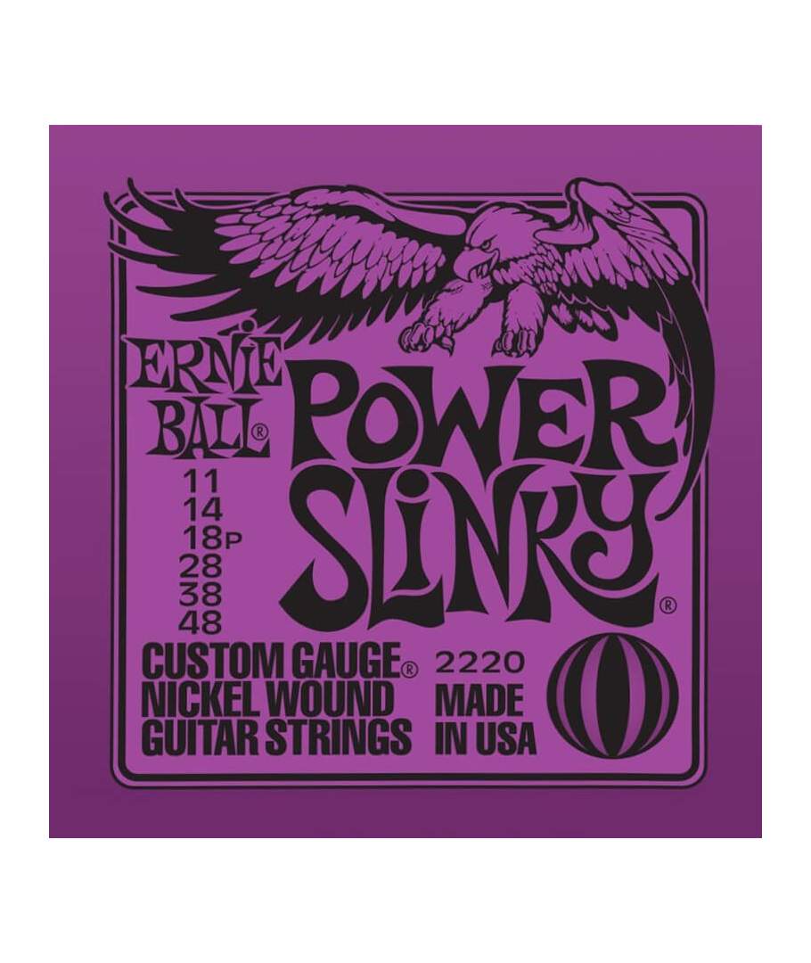Juego Cuerdas Guitarra Eléctrica Ernie Ball 2220 Power Slinky. Las Power Slinky son uno de los modelos más vendidos de Ernie Ball porque son perfectas para obtener ritmos y tonos gruesos tanto de Blues como de Rock. No en vano han sido las favoritas de Slash, Metallica o Kenny Wayne Shepherd.