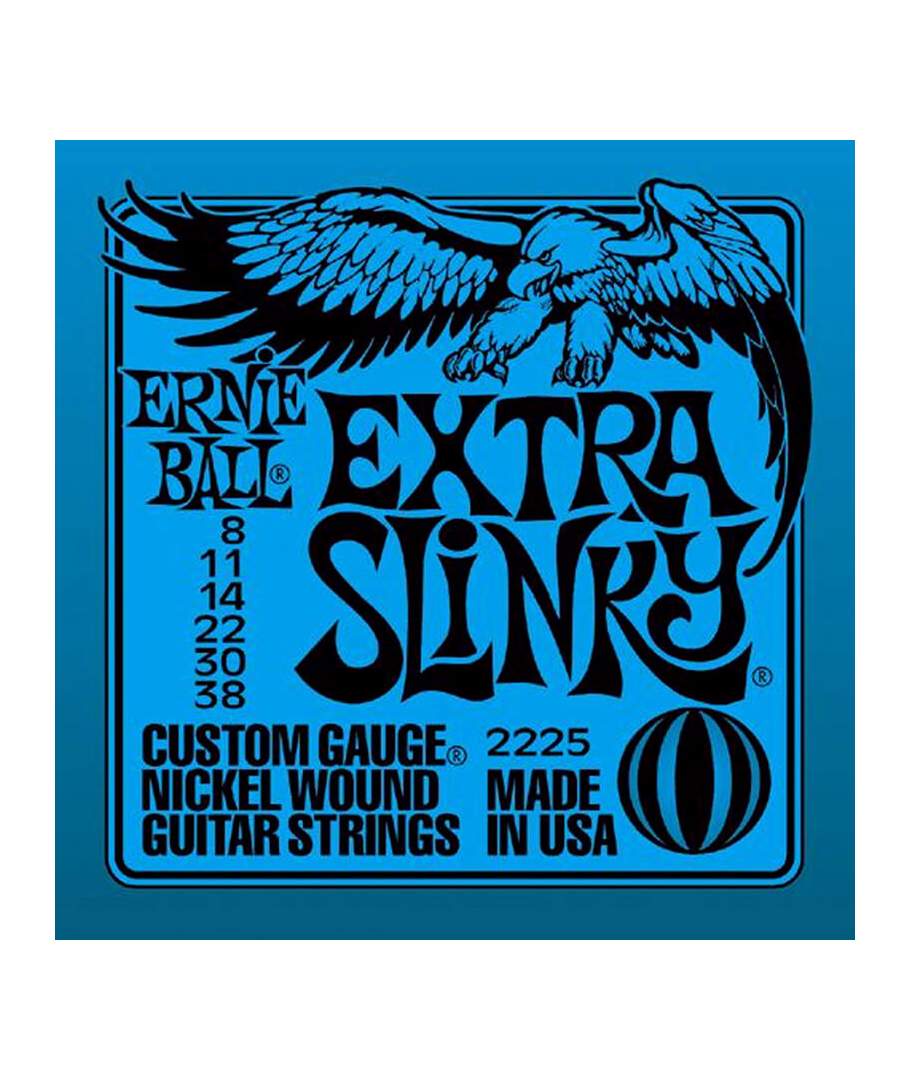 Juego Cuerdas Guitarra Eléctrica Ernie Ball 2225 Extra Slinky. Estas cuerdas son reverenciadas por su facilidad a la hora de tocar y su tono brillante. Están fabricadas bajo los más estrictos controles para garantizar la máxima consistencia y una mayor duración. Presentan un entorchado de niquel sobre un hilo de núcleo hexagonal, mientras que las cuerdas planas están fabricadas con una aleación de acero y carbono para proporcionar un tono preciso y balanceado.