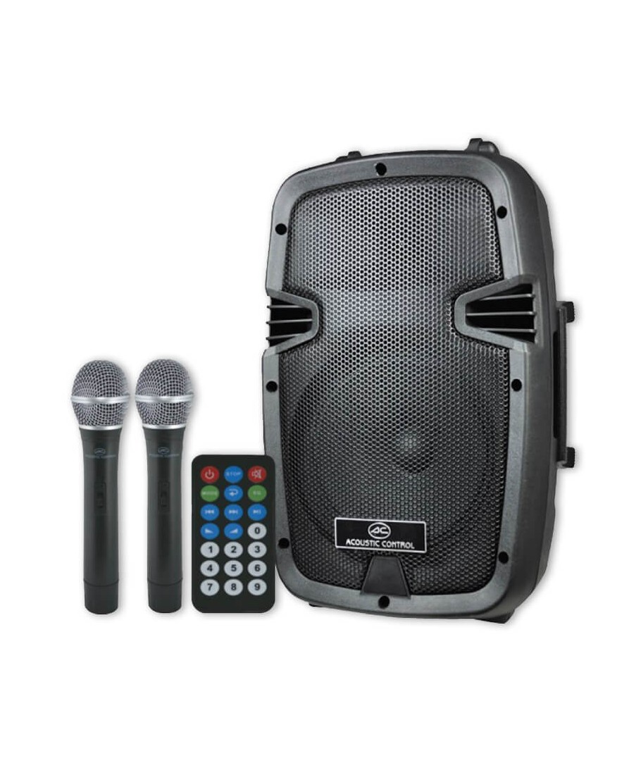 ACOUSTIC CONTROL COMBO 10. Equipo portátil compacto de 400W con reproductor MP3, Bluetooth y 2 micrófonos inalámbricos incorporados.