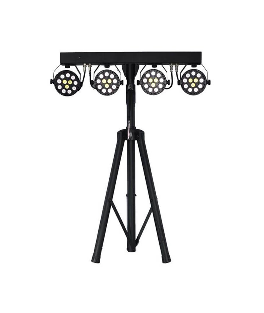 ACOUSTIC CONTROL PARTY COLOR LED. Barra de efectos con 4 proyectores Tipo PAR de 36W LED RGB + blanco. Sistema compacto ideal para fiestas y celebraciones. Instalación en trípode (incluido) o colgado mediante 2 anclajes M10.