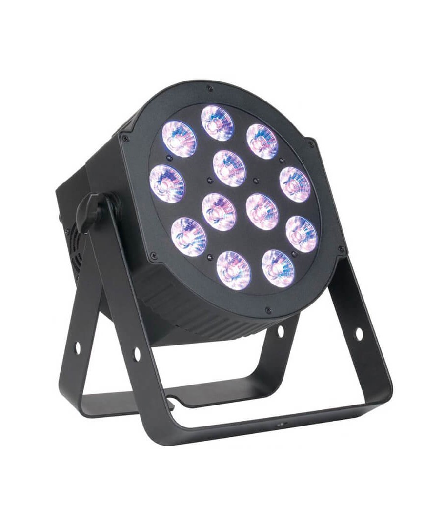 AMERICAN DJ 12P HEX. Accesorio LED Par versatil con 12x12-Watts, 6-en-1 LEDs HEX. Con un ángulo de haz de 30 grados, los usuarios pueden producir amplios whashes con una suave mezcla de colores de 63 macros de colores incorporados que utilizan LEDs de color rojo, verde, azul, ámbar, blanco y ultravioleta. Esto no es solo genial para iluminar escenarios, si no que también es un LED ideal por su inteligentemente diseñado, poder y conectores DMX, que es ideal para la iluminación ascendente un lugar (pendiente de patente).
