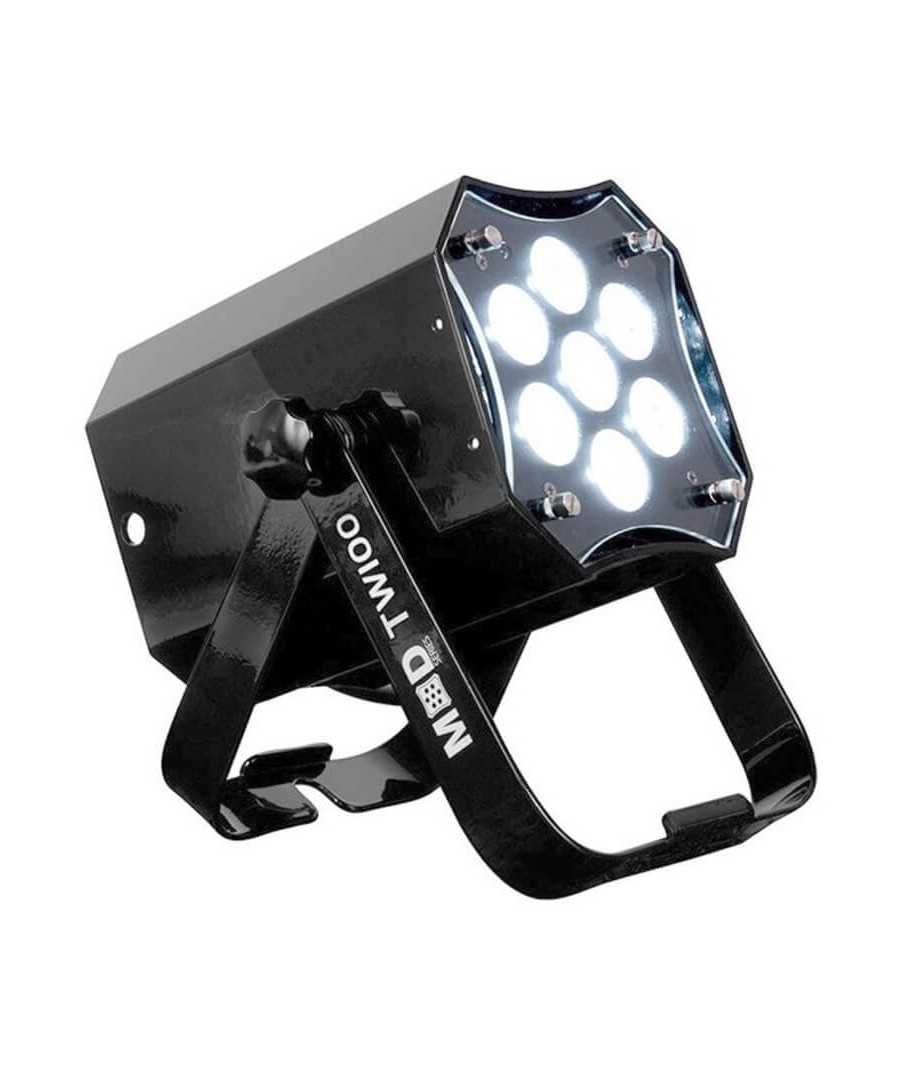 AMERICAN DJ MOD TW100. El MOD TW100 viene equipado con siete diodos LED CW/WW/WW/ÁMBAR (4 en 1) de 15 W (para una potencia total de 105 W), un yugo de tijera y tres filtros difusores intercambiables que se desmontan fácilmente con tornillos de ajuste manual. El haz estándar de 17 grados se puede cambiar sobre la marcha a 20, 40 0 60 grados.