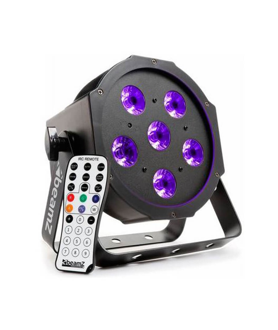 BEAMZ 151216. Este foco PAR plano con 6 leds super brillantes de 6W UV puede ajustarse a cualquier espacio en tu truss. La unidad ofrece un efecto impresionate UV de luz negra.