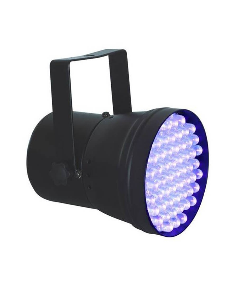 BEAMZ 151266. Foco DMX LED de 2 canales en carcasa PAR36. La unidad incorpora 55 Leds de alto brillo ultravioleta de 10mm y una pantalla LED DMX.