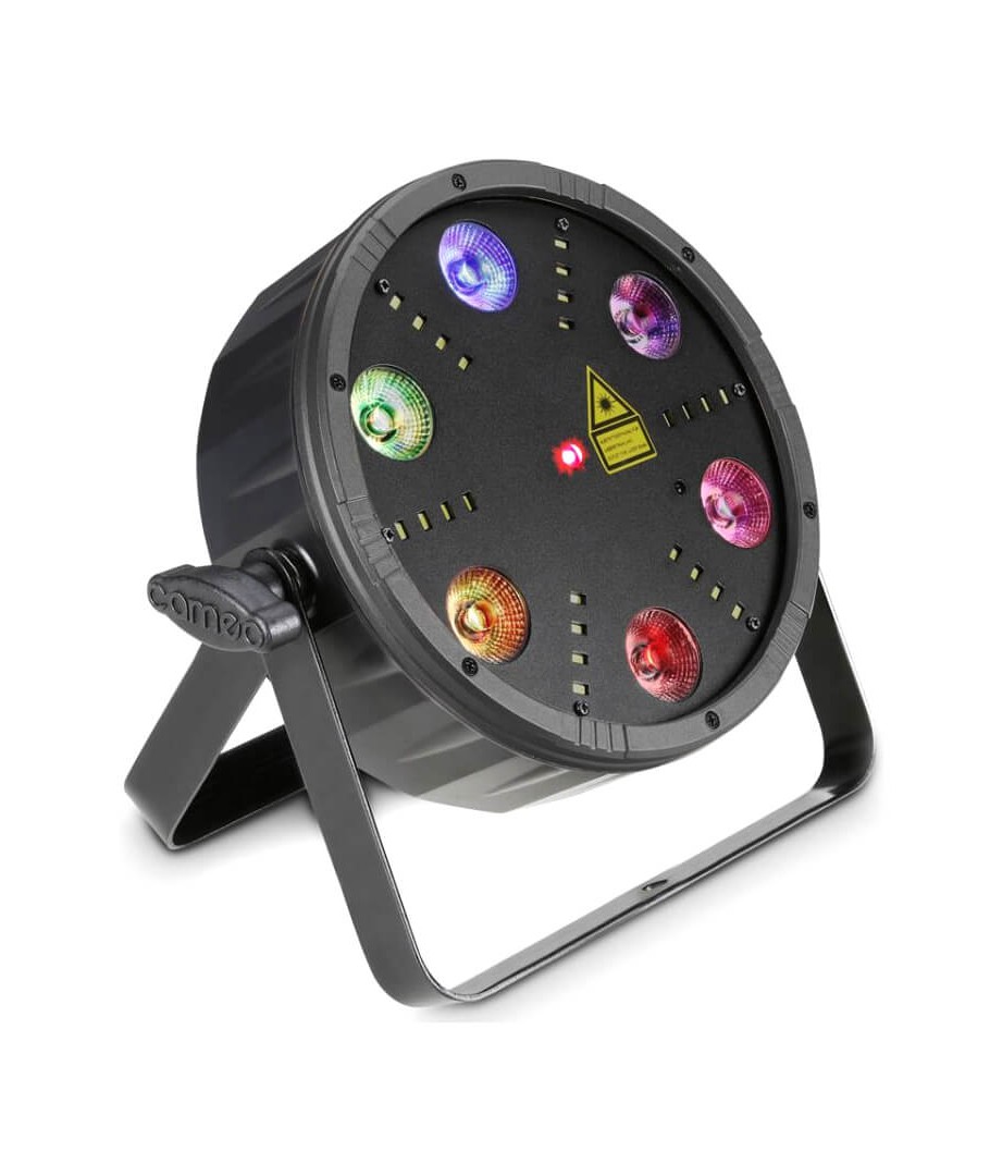CAMEO FLAT STORM. El Flat Storm combina un foco PAR luminoso, un láser espectacular y un estrobo ultrarrápido en un mismo equipo y, al ser muy plano, apenas ocupa espacio.