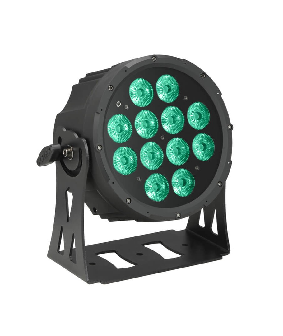 CAMEO FLAT PRO PAR CAN 12. Foco PAR LED RGBWA plano 12 x 10 W con carcasa negra. El CLPFLATPRO12 de Cameo es un foco PAR profesional con un diseño muy plano, ya que utiliza un sistema de refrigeración por convección, lo que es ideal en espacios limitados y cuando se necesita un funcionamiento silencioso.
