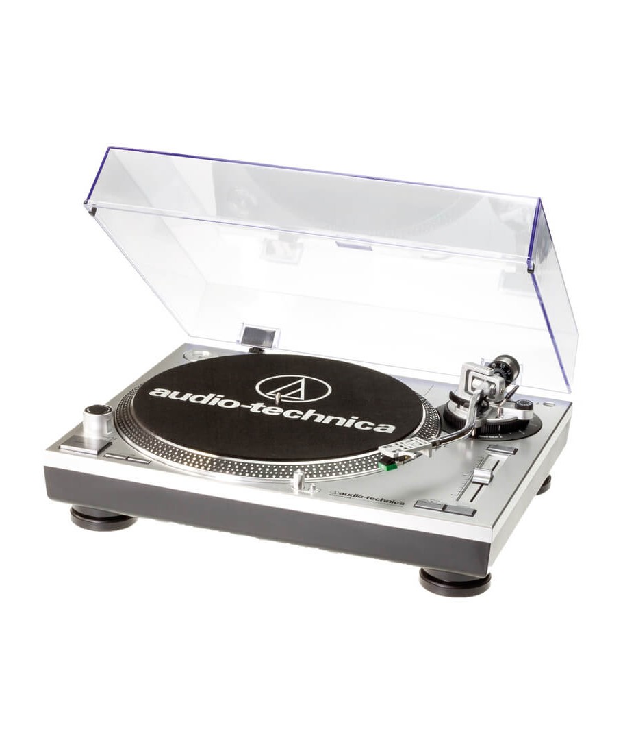 AUDIO TECHNICA AT-LP120 USB HC. Este giradiscos profesional dispone de un motor de tracción directa con alto par de fuerza, arranque rápido y salida USB estéreo que se conecta directamente a su ordenador. Otras prestaciones incluyen capacidad de reproducción adelante y atrás; plato de aluminio fundido con patinador y botón de arranque / parada; tres velocidades -33/45/78-; enclavamiento de tono de alta precisión y controlado por cuarzo y control deslizante de cambio de tono con gamas de ajuste de +/ -10% o +/ -20%; y cubierta anti polvo abatible y extraíble.