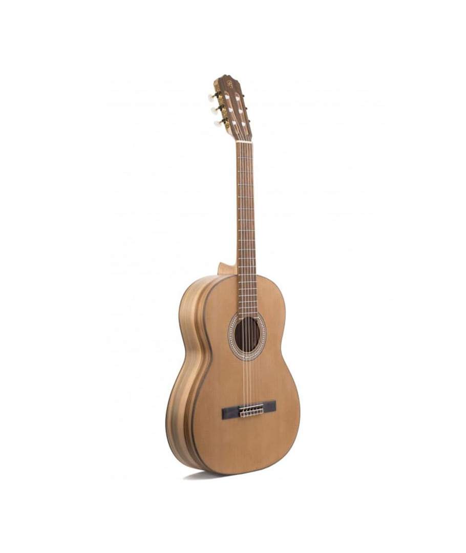 Prudencio Saez 2-S 160. Guitarra clásica de iniciación fabricada al 100% en España con buenas maderas y el buen hacer de artesanos como Prudencio Saez. La Prudencio Saez 160 representa una magnífica alternativa a las guitarras clásicas asiáticas de muy inferior calidad. Con una tapa de cedro macizo, cuerpo de Redgum, diapasón de palosanto, puente de palosanto y acabado brillante, estamos ante una guitarra perfecta para la iniciación o como segunda guitarra.