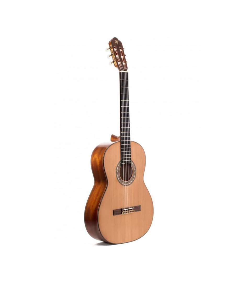 Prudencio Saez 1-M G3. Guitarra clásica construida en España con materiales de calidad y maderas macizas. Es un modelo intermedio deguitarras Prudencio Saez. Se ha prestado especial atención a la acción de la guitarra con el estudiante en mente. El sonido es rico, con mucho volumen y un sonido muy bien equilibrado. El cuerpo de Sapelly macizo da a la guitarra una buena proyección y volumen y la tapa de cedro macizo da a la guitarra un sonido profesional. La calidad y la belleza de esta guitarra es muy sorprendente teniendo en cuenta su precio.