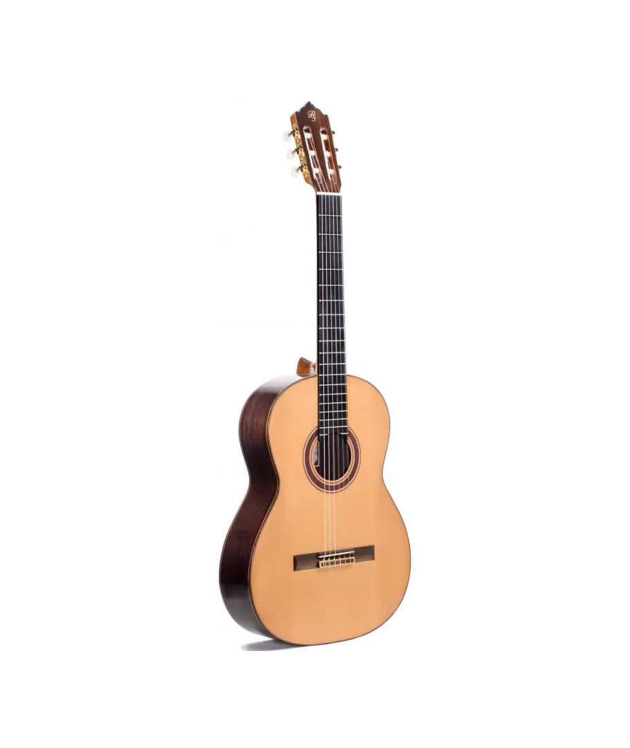 Prudencio Saez 4-S. Anteriormente modelo 31 es una guitarra clásica construida en España con materiales de calidad. Es un modelo intermedio de guitarras Prudencio Saez. Se ha prestado especial atención a la acción de la guitarra con el estudiante en mente. El sonido es rico, con mucho volumen y un sonido muy bien equilibrado. El cuerpo de palosanto da buena proyección y la tapa de cedro macizo da a la guitarra un sonido profesional. La calidad de esta guitarra es muy sorprendente teniendo en cuenta su precio. Funda incluida.