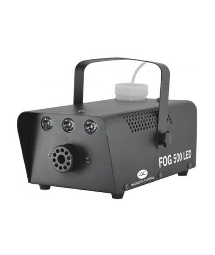 ACOUSTIC CONTROL FOG 500. Máquina de humo profesional de 700W. Posee iluminación LED efecto fuego con interruptor para conexión/desconexión. Incluye Control remoto con cable de 3m.