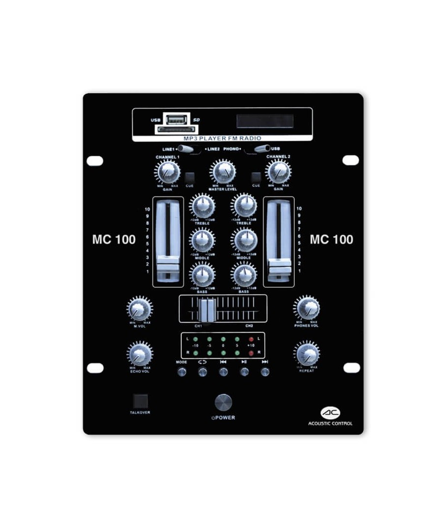 ACOUSTIC CONTROL MC 100. Mezclador de 2 canales con reproductor MP3 y radio FM.