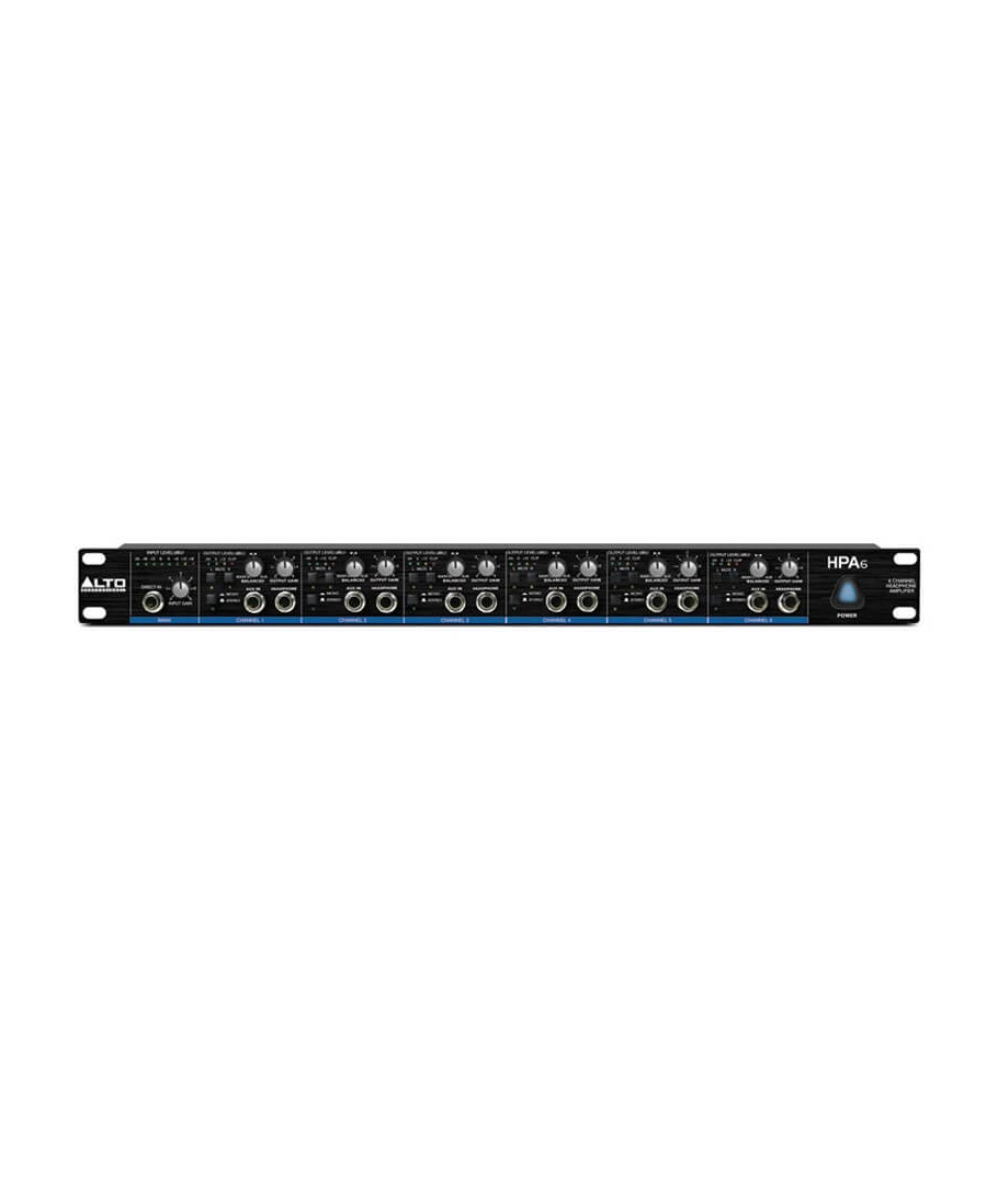 ALTO HPA 6. Mezclador y amplificador universal de auriculares que puede ser utilizado en ensayos, estudio o escenarios. Perfecto para auriculares, monitorización intra aural o mezcla de monitorización personal, el HPA6 incorpora seis amplificadores estéreo de alta potencia independientes, alojados en una compacta unidad en formato rack, capaz de proporcionar un sonido de la máxima calidad, incluso cuando se trabaja a niveles de volumen muy bajos. La ruta de señal de HPA6 se ha minimizado al máximo, permitiendo obtener un sonido claro y cristalino.