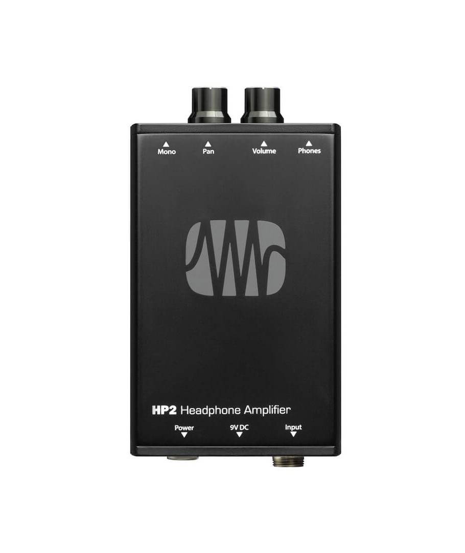 PRESONUS HP2. Amplificador de auriculares diseñado para grabación movil y monitorización in-ear. Posee dos entradas de linea XLR hembra (a través de un cable de 2m incluído) y una salida de auriculares estéreo de minijack con control de volumen. Puede usarse tanto en estéreo como en mono y elegir la panorámica. También se puede montar en un pie de micro o llevarlo en el cinturón. Se alimenta por una batería de 9V (no incluído) pero también tiene la opción de conectarlo con un adaptador de corriente (9VDC, 40mA)
