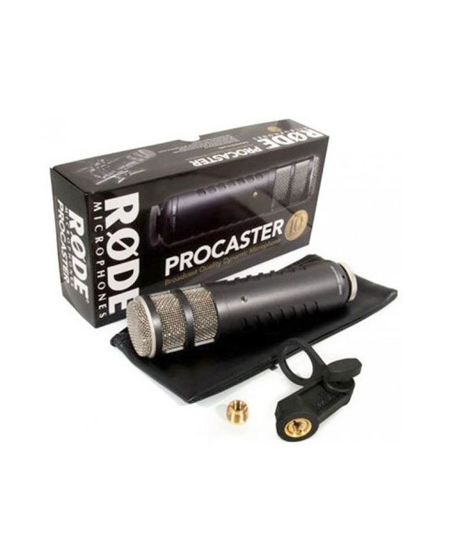 RODE PROCASTER. Micrófono dinámico profesional con calidad broadcast específicamente diseñado para ofrecer un excelente rendimiento en voces dentro de entornos broadcast. Ofreciendo un patrón polar muy estrecho y una respuesta en frecuencia especialmente ajustada para voces, Procaster es perfecto para cualquier uso donde sea necesario un micrófono robusto con un excelente sonido y un rechazo sobre el ruido ambiente.
