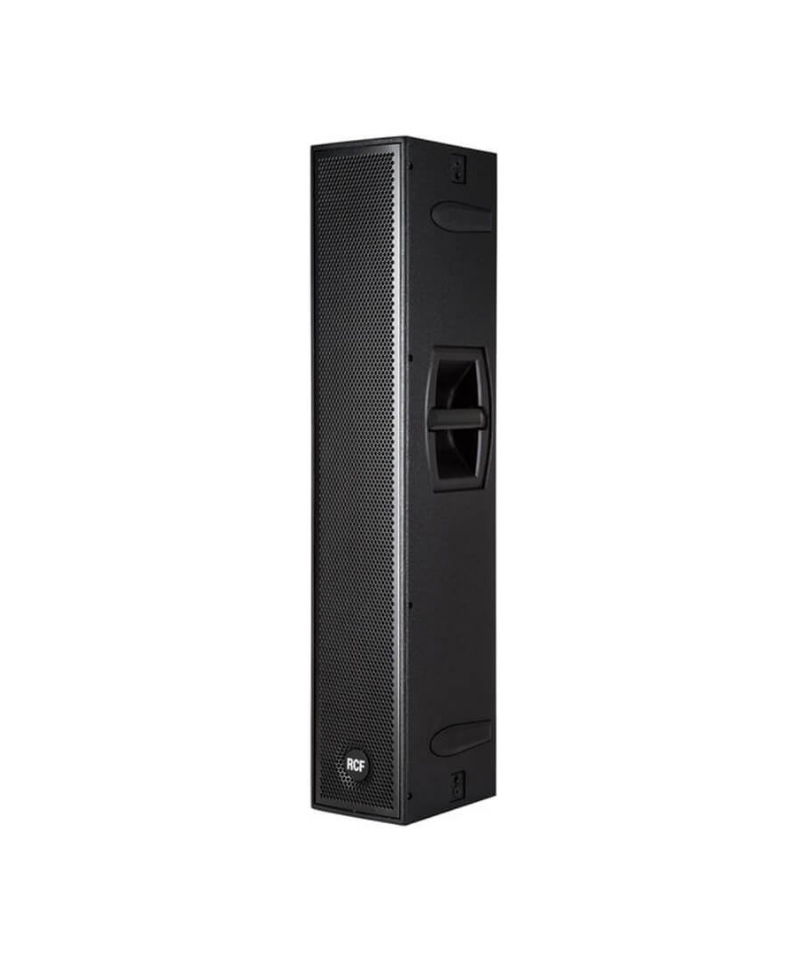 RCF NX L-24A. Sistema de array de columnas activas de altavoces compuesto por 4 woofers de 6” de alta potencia y un driver de compresión de 2,5” con bobina montado sobre una guía de onda con bocina de direccionalidad constante 100° x 30°. El amplificador proporciona 1400 vatios y está controlado mediante un DSP que se encarga del crossover, la ecualización, la alineación de fase, las protecciones de los altavoces y el limitador de codo suave. Existen ecualizaciones disponibles para trabajar con una única columna o por pares.
