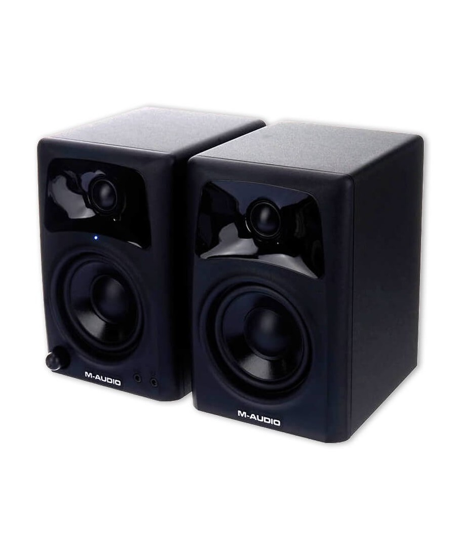 M-Audio AV32. Los monitores MDF eliminan resonancias que roban claridad. Amplificación a bordo que ofrece 10 vatios de potencia por canal. Diseño de dos vías con un diseño bass reflex optimizado y guías de onda OptImage IV para entregar amplios bajos y agudos cristalinos.