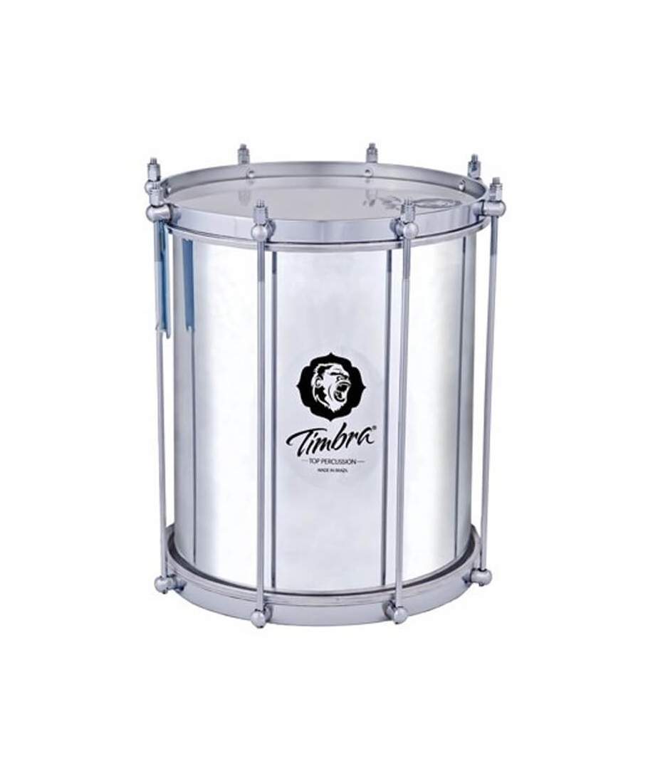 REPENIQUE TIMBRA 10"x 30 CM ALUMINIO. Optar por un repenique más pequeño que el estándar de 12" es una buena decisión si te importa mucho llevar menos peso o tener menos equipaje. El tamaño de 10" también es ideal para niños o sambistas jóvenes simplemente por ser más proporcional y más fácil de manejar. En cuanto al sonido no te pierdes nada, con un repinique de 10" igualmente eres capaz de tocar buenas llamadas y solis, naturalmente el cuerpo de resonancia es un poco más pequeño.