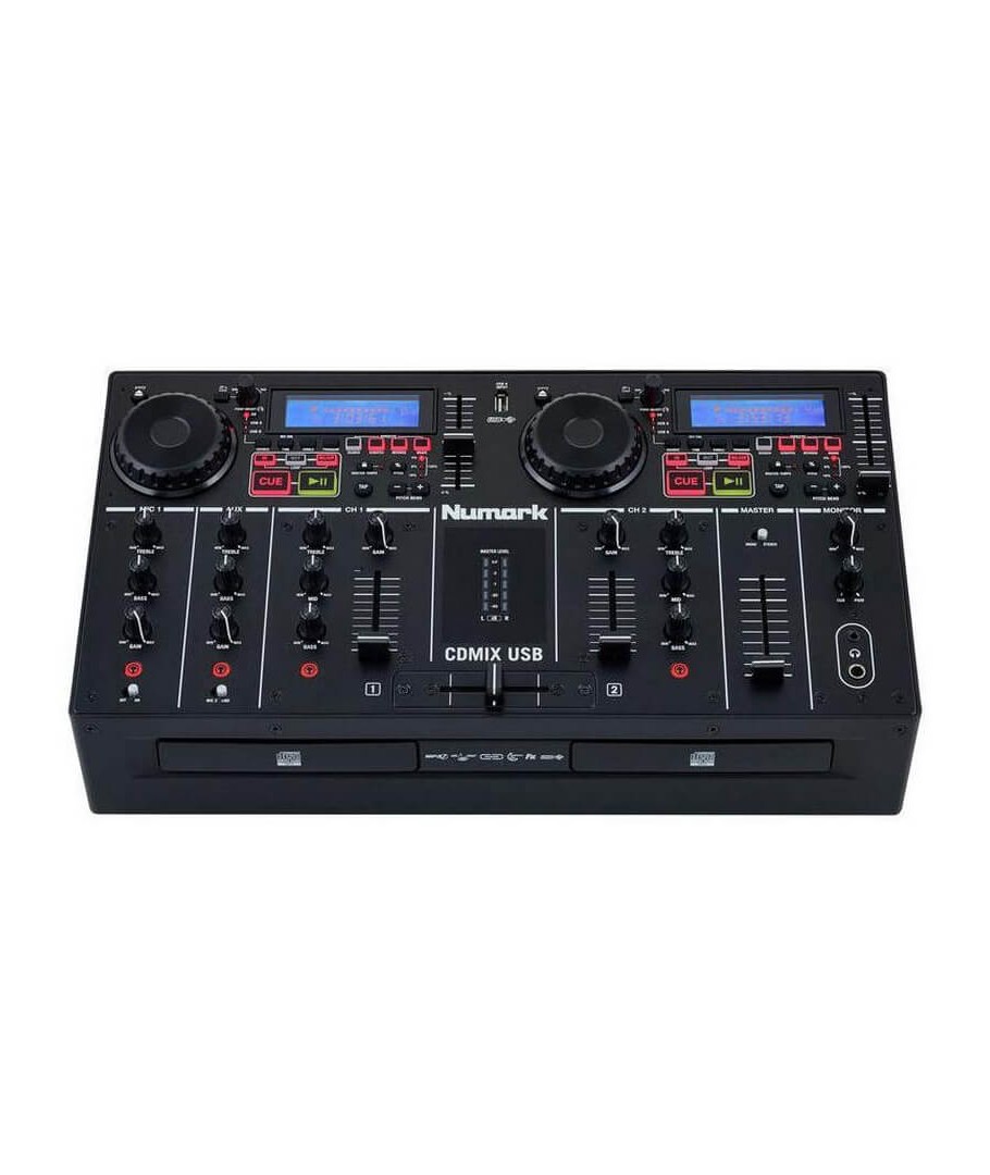 NUMARK CDMIX USB. Totalmente equipado y listo para reproducir música desde un reproductor de CD doble, una unidad flash USB o una entrada auxiliar RCA. Manten el control con un mezclador de dos canales digital y bandas de ecualización dual, y manten el ritmo con una pantalla brillante, iluminada para cambiar del todo su contenido multimedia. Da sabor a la fiesta con una función de efectos para transiciones suaves, o muestra tus habilidades de mezcla / de memoria virtual para mantener el flujo musical.