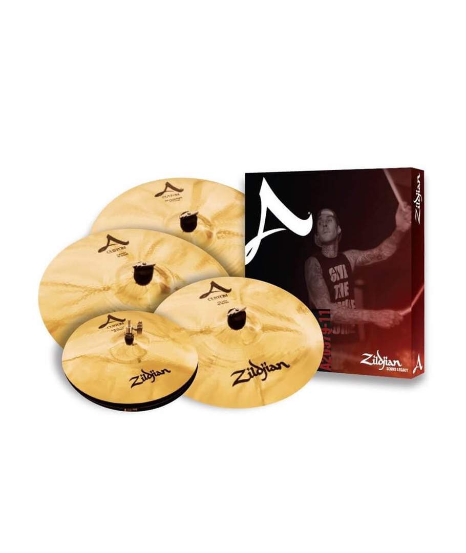 Set de Platos Zildjian A Custom Professional Set. La serie A Custom es la elección de infinidad de bateristas de renombre de rock, metal y fusión. Cuentan con acabado brillante y nuevas técnicas de martilleado que hacen que estos platos tengan el sonido de A Zildjian, pero con un toque contemporáneo. Los A Custom no son demasiado oscuros ni demasiado brillantes. Tienen una respuesta rápida y un ataque limpio.