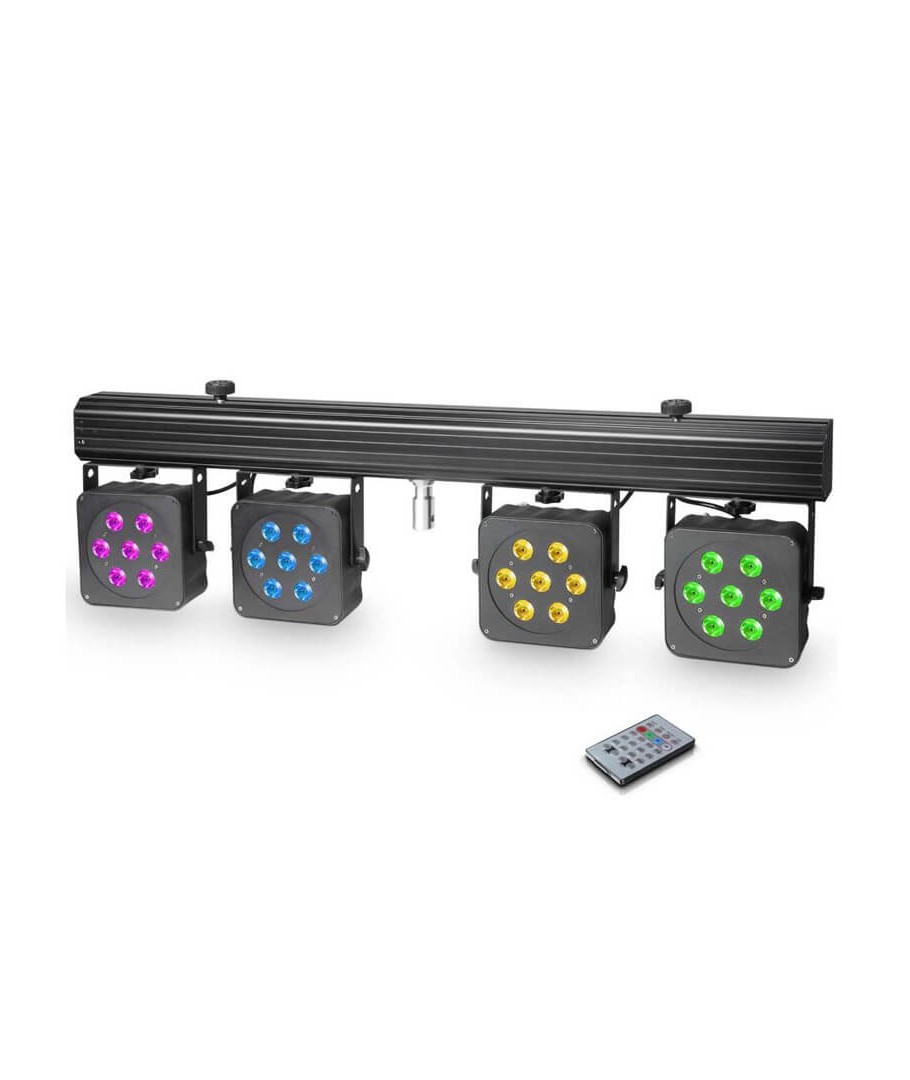 Los cuatro focos PAR planos provistos de siete LEDs ultrabrillantes de 8 W y cuatro colores ofrecen un ángulo de dispersión de 25°, se enfrían por convección, se ajustan individualmente y están montados en una barra que integra un controlador y todas las conexiones. Para la entrada y salida de la alimentación eléctrica, dispone de conectores Neutrik PowerCon, y pueden enchufarse dos focos externos a dos bases Schuko conmutables. El control se realiza por DMX, por medio del mando a distancia por infrarrojos suministrado, un pedal opcional o la pantalla LCD retroiluminada con cuatro botones.