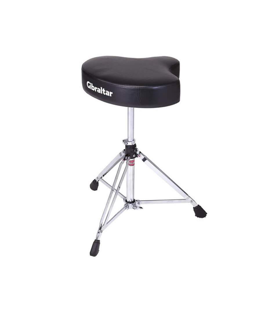 Sillín Batería Gibraltar 6608 Moto. Sillin ligero con asiento tipo moto. Regulable mediante memoria. Patas de perfil doble. Altura de 18 a 24" (45 a 60 cms)