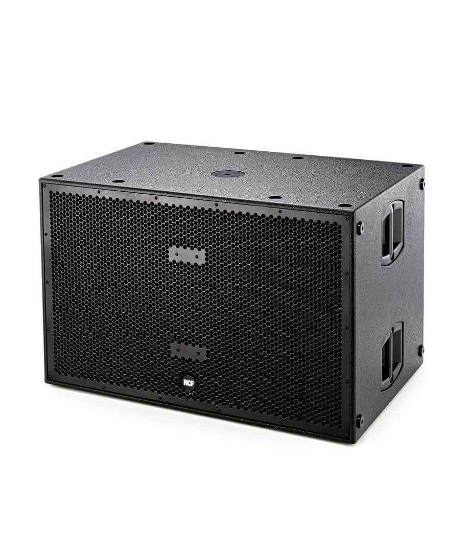 RCF SUB 8006-AS. Es el sub-bajo activo más grande y potente de la serie profesional. Con dos transductores de 18” y bobinas de 4” con arrollamiento "Inside-outside", la caja está diseñada para entregar unos niveles de bajos realmente serios.