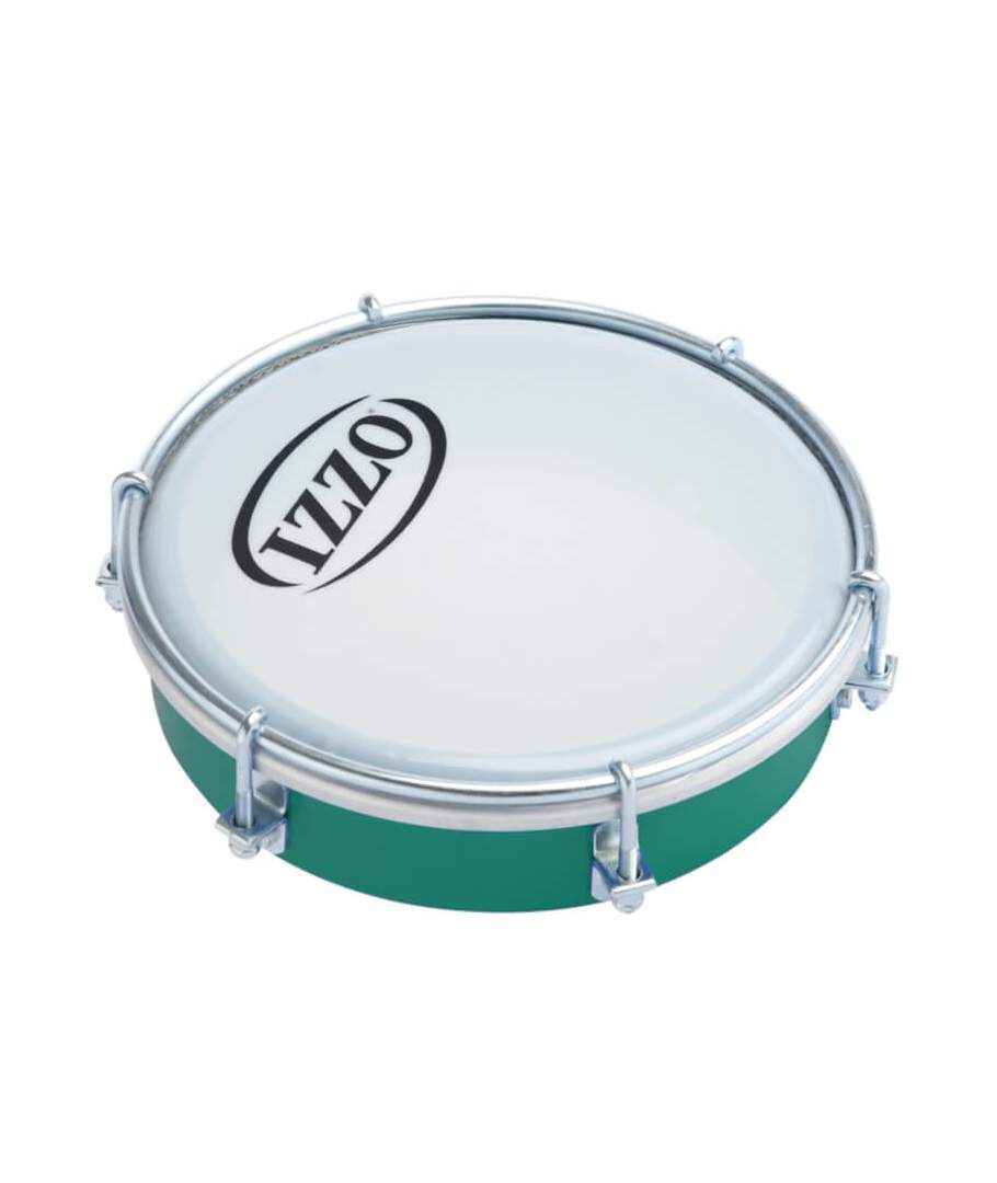 TAMBORIM IZZO 6''VERDE. Un tamborim simple y todavía bien hecho de plástico ABS. 6 ganchos, la altura del margen y la háptica son agradables lo que hace que el instrumento esté ideal para principiantes, niños, clases de percusión o para los que sólo tocan el tamborim de vez en cuando. Es una alternativa más económica a los instrumentos más costosos de aluminio, sin embargo no lo puedes afinar tan alto.