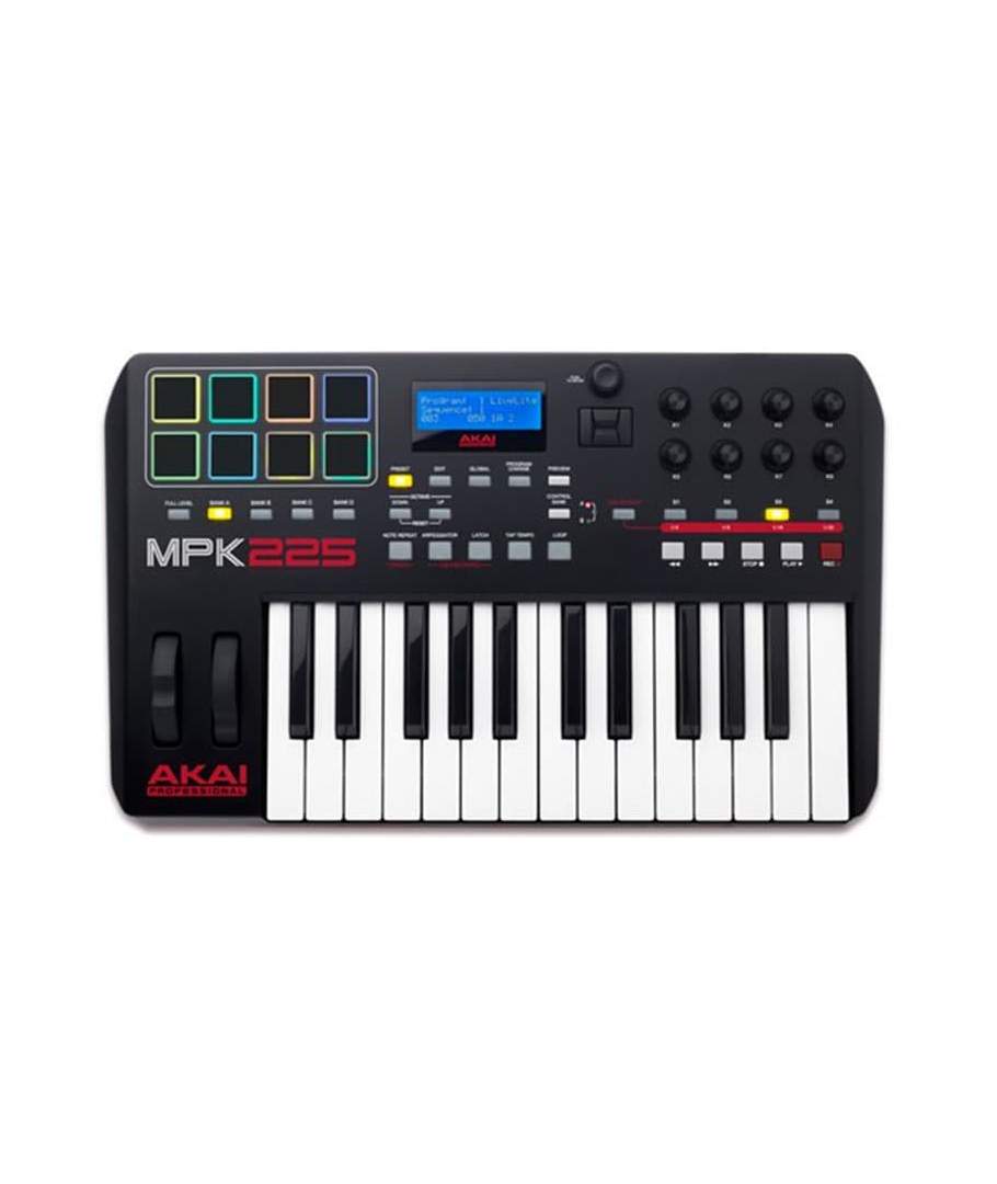 AKAI MPK-225. Los nuevos MPK de Akai son aun más delgados que los antiguos modelos, además incorporan Pas retroiluminados copiados de la MPC RENAISANCE y una pantalla LCD con 20 caracteres. Esta nueva familia incluye la capacidad de enviar comandos QWERTY usando controles suaves. Estos nuevos modelos vienen con títulos de software de producción de música avanzados incluyendo Ableton Live Lite y MPC esencial.