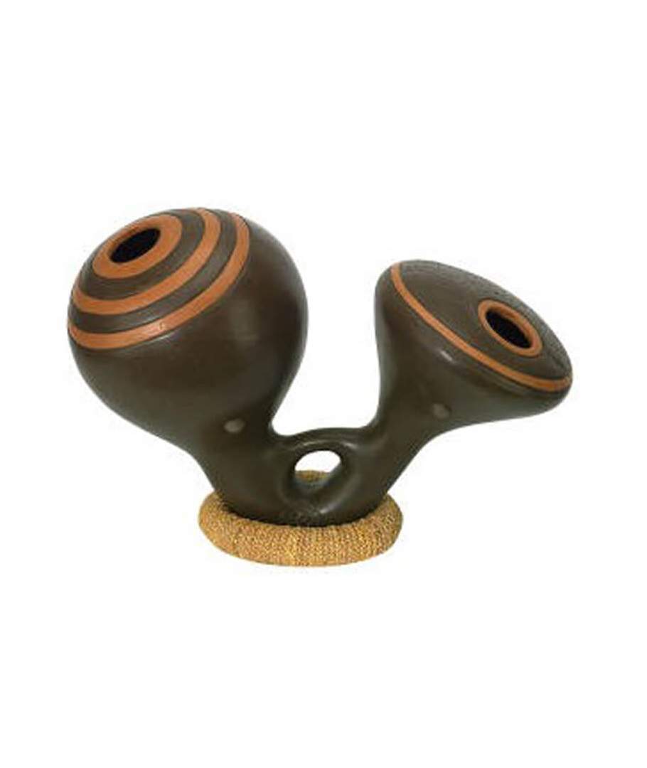 Udu Lp Lp1400-Hg Hadgini. Desarrollado por Frank Giorgini y el percusionista Jamey Hadad. Formado por dos camaras en formato "V" con un corredor de aire entre ellas. Sonido grave y calido de una cámara combinado con un sonido brillante y transparente de la otra. Este Udu pone a tu disposición multitud de texturas y sonidos diferentes.
