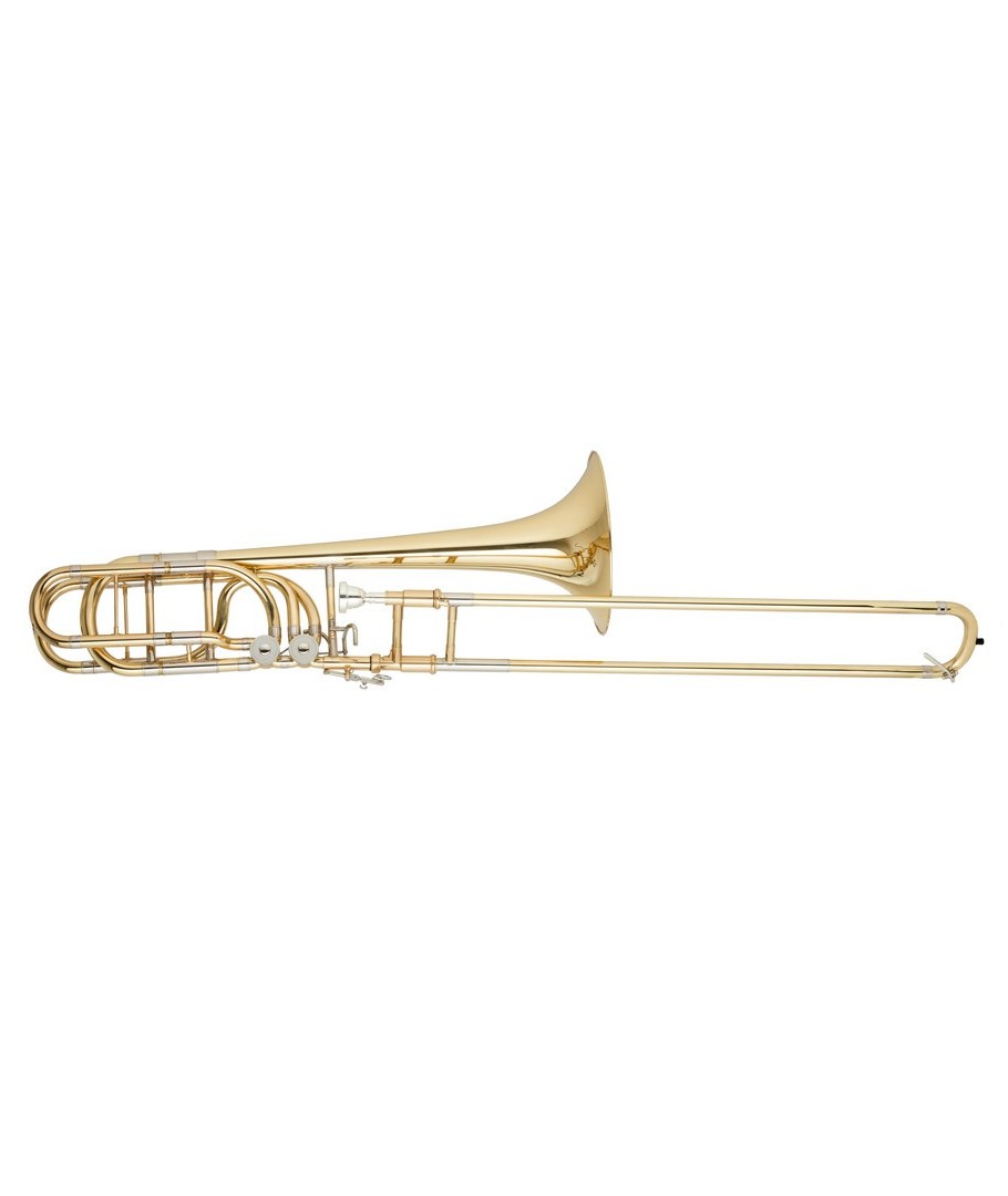 JP232. Trombón bajo de doble hilera en línea (independiente) de John Packer. Este instrumento ha tenido mucho éxito como modelo de mejora en el mercado semiprofesional.