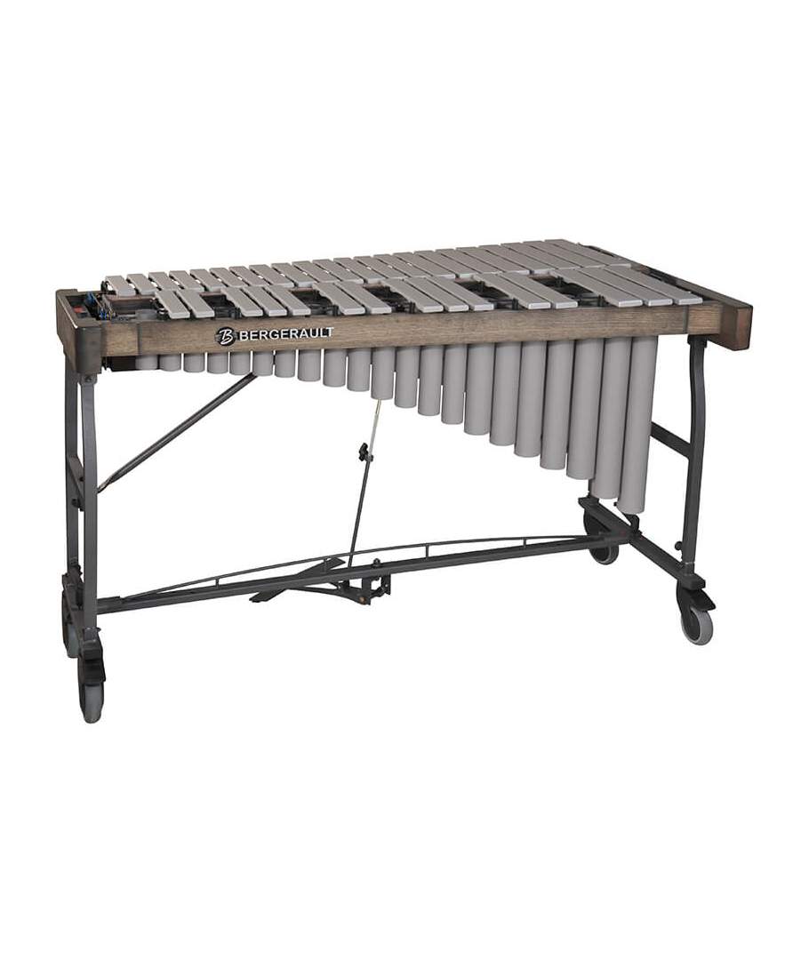 Vibráfono Bergerault BV30S. Los vibráfonos de la serie Signature de Bergerault son un logro único en ingeniería musical. Los motores son excepcionalmente silenciosos, lo que permite al músico actuar sin sonidos no deseados. Las barras de aluminio graduadas están disponibles en dorado o plateado y, combinadas con el marco de madera de fresno, completan una apariencia impresionante igualmente combinada con un sonido expresivo y de voz completa.
